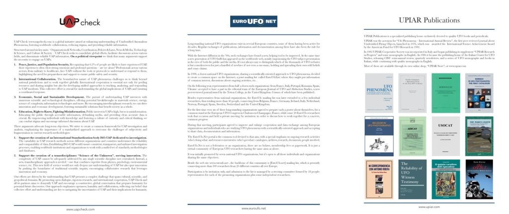 A joint presentation leaflet was prepared about UAP Check, EuroUfo.net, CISU and UPIAR Publications. It was handed over to old and new contacts there.