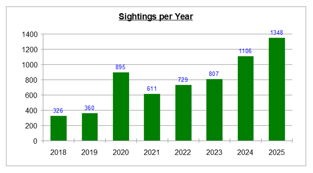 The following figure shows the number of sighting reports received since 2018.